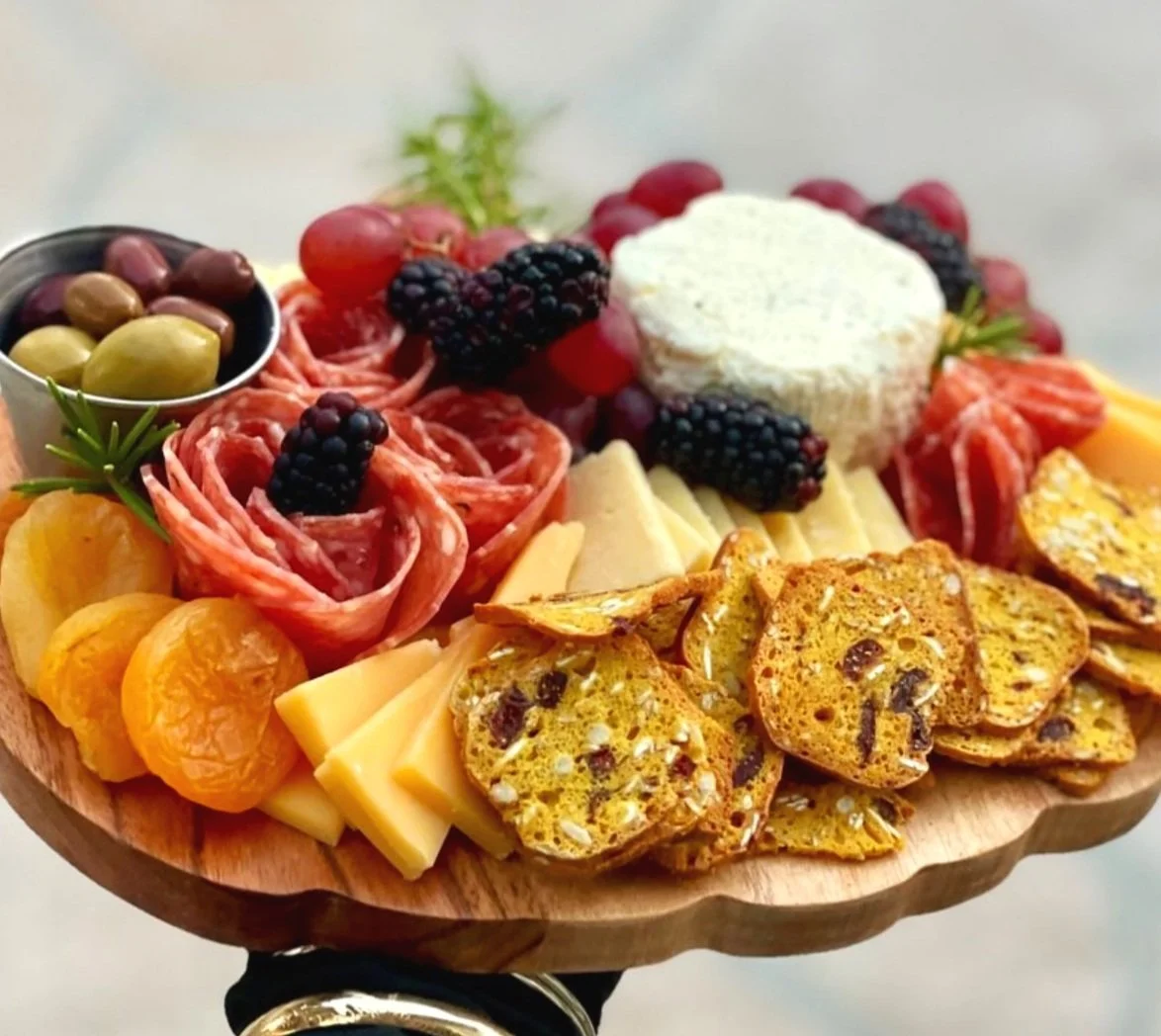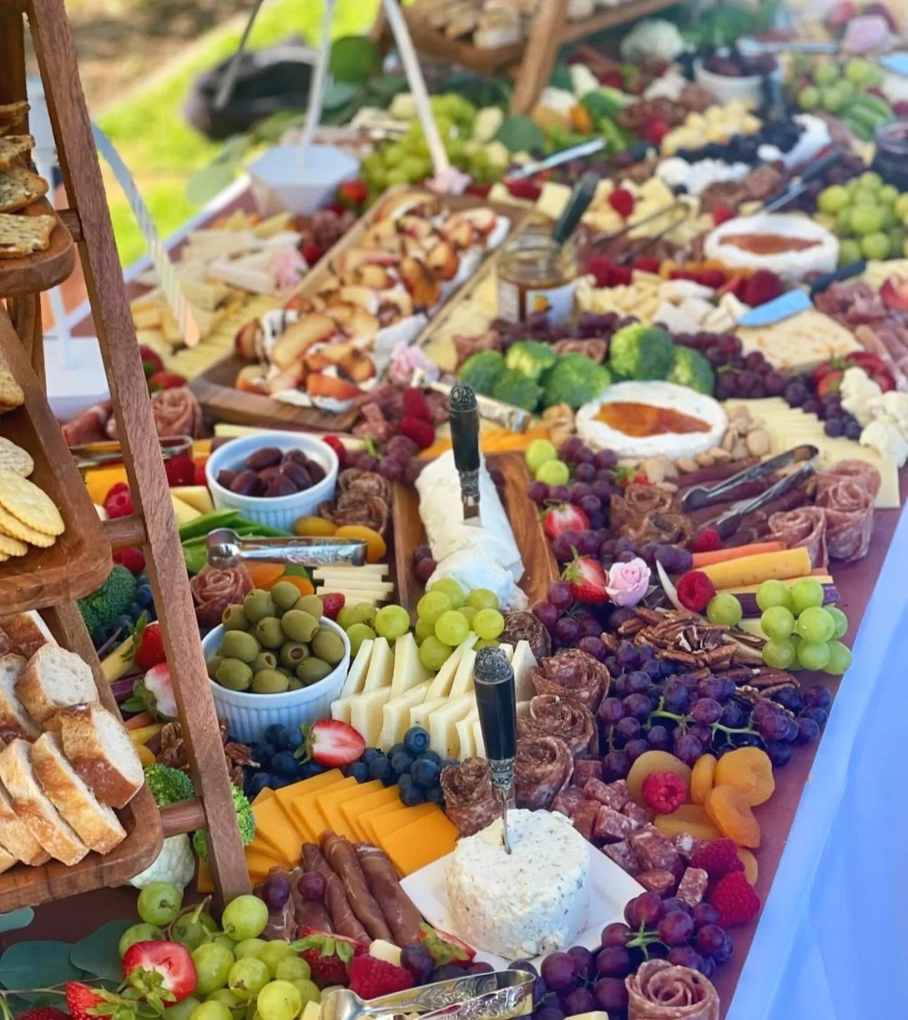 Includes: 2 hours, set up, break down, table attendant, meats, cheese, veggies, fresh fruit, dried fruit, nuts, olives, crackers, bread, jam and spreads and more.